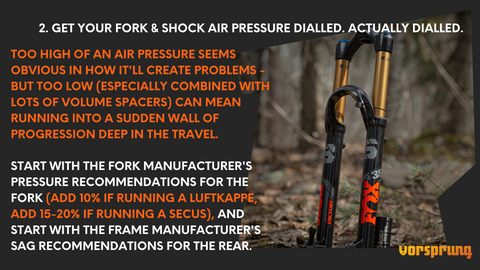 - Get your fork & shock air pressure dialled. ACTUALLY dialled.