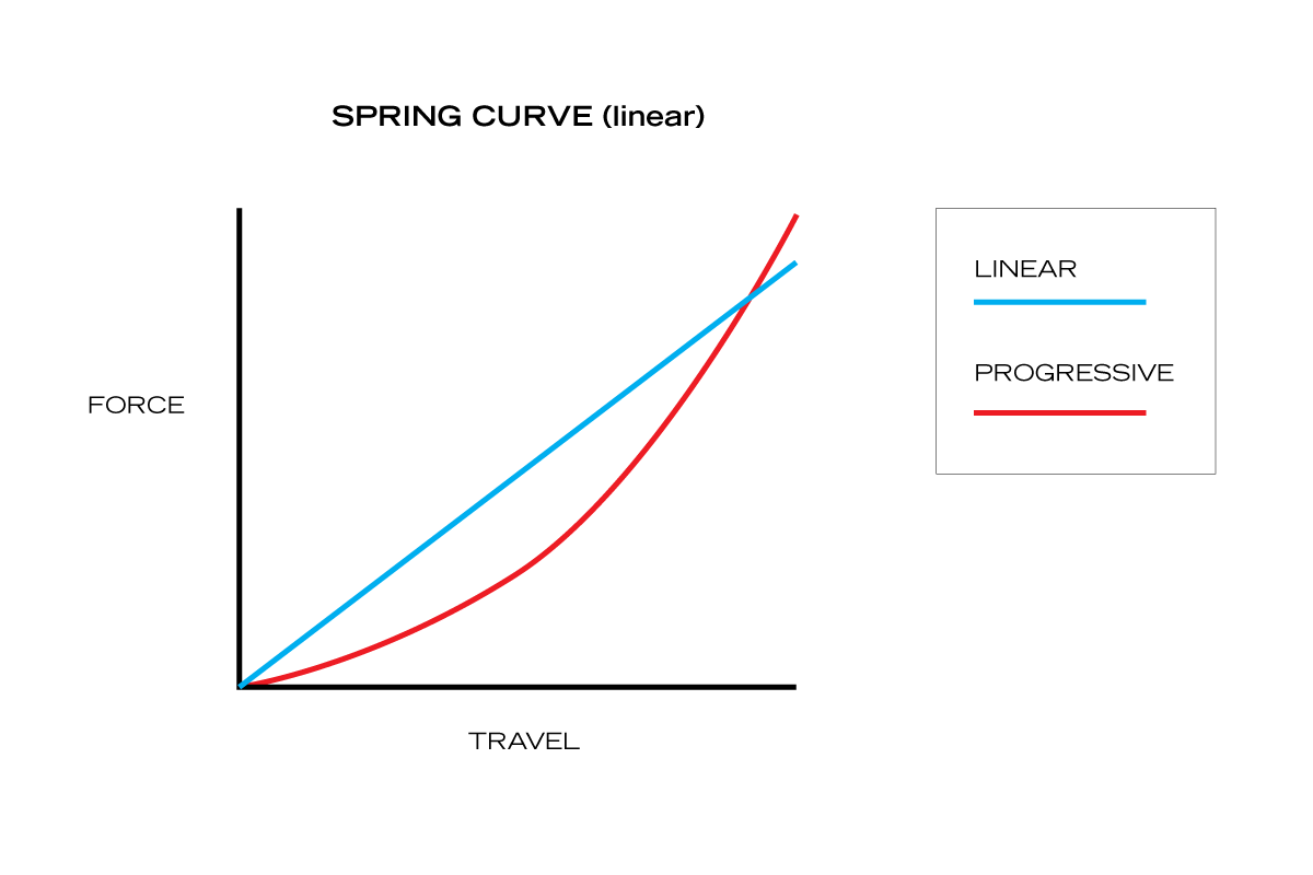 Air springs however, don’t work that way, they are considered naturally progressive. Progressive means that the spring rate is higher towards end of the travel than it is earlier in the travel, in other words, it's generally softer at the start and firmer at the end.